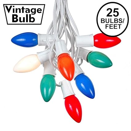 Buy 25 Foot Multi C9 Ceramic Christmas Lights Set Indoor Outdoor Christmas Light String Christmas Tree Lights Opaque Christmas Bulbs Roofline Light String Outdoor String Lights White