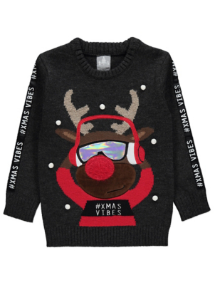 Charcoal Rudolph Light Up Slogan Christmas Jumper Kids George At Asda